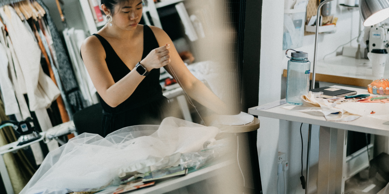 That's why we have chosen to move the making of our clothes back home to our very own atelier in Singapore. Where we have the freedom to experiment, create, and make exciting new designs at a pace that doesn't add to the over production happening around the world.